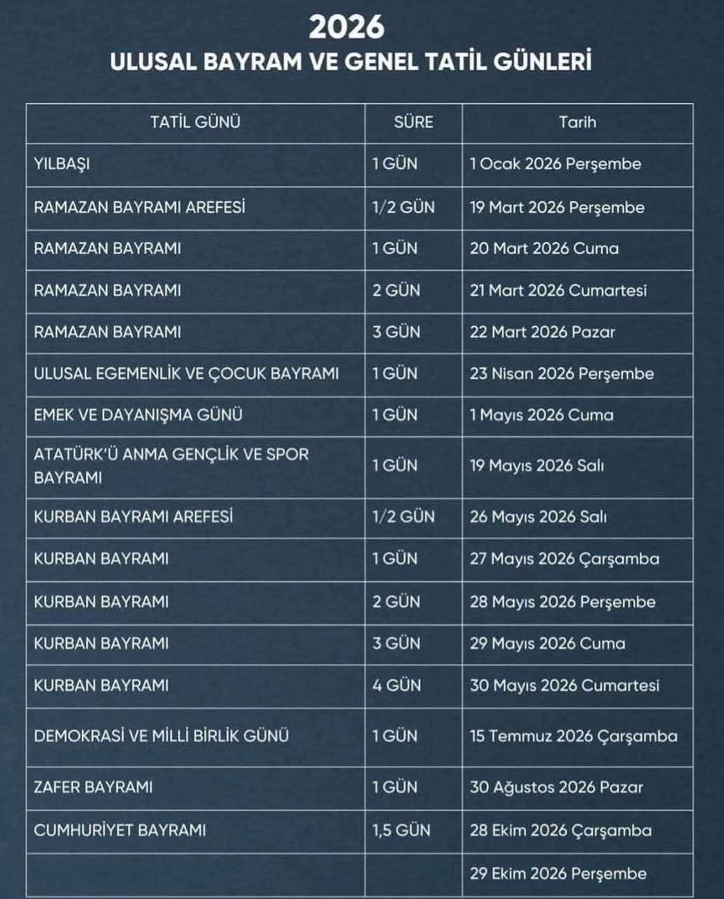 2025 yılında bir çok tatil gününün hafta sonuna denk gelmesi çalışanları üzmüştü. 2026 tam tersi oldu hemen hemen tüm resmi tatiller hafta içine denk geliyor